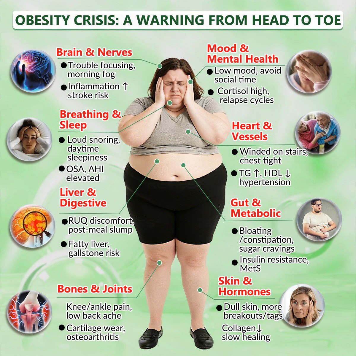 - Cancer risk: Increases cancer risk by 50% compared to people with healthy weight.